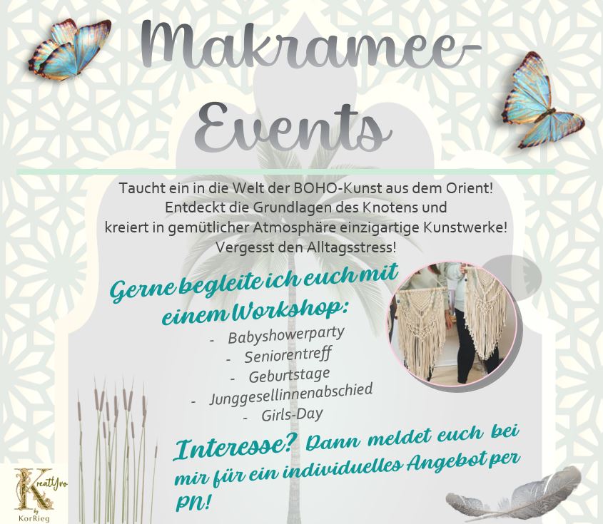 Gerne bringe ich die Makramee-Kunst zu deinem Event.